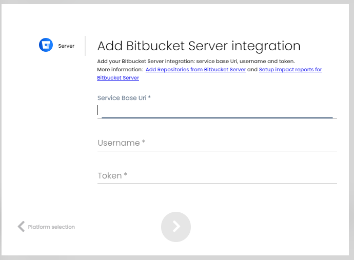 Note: If you have not setup your Bitbucket Server Base URI or Token or you did not have the correct information, the below dialog will appear, and you can change/add your Bitbucket Server URL, username and token.